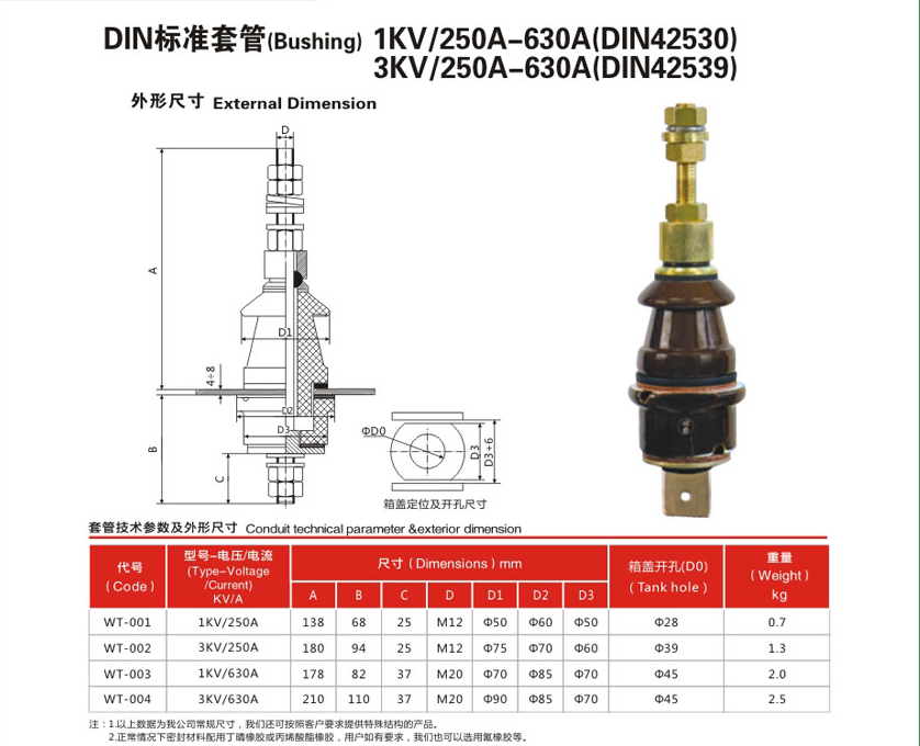 1KV/250A-630A(DIN42530) 3KV/250A-630A(DIN42539)變壓器套管