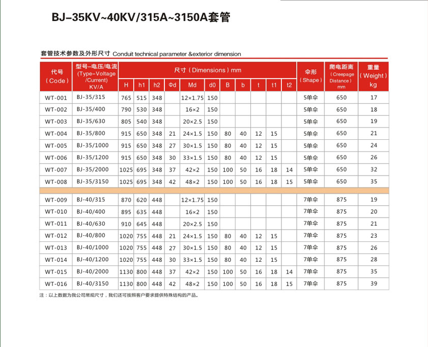 BJ-35KV~40KV/315A~3150A變壓器套管